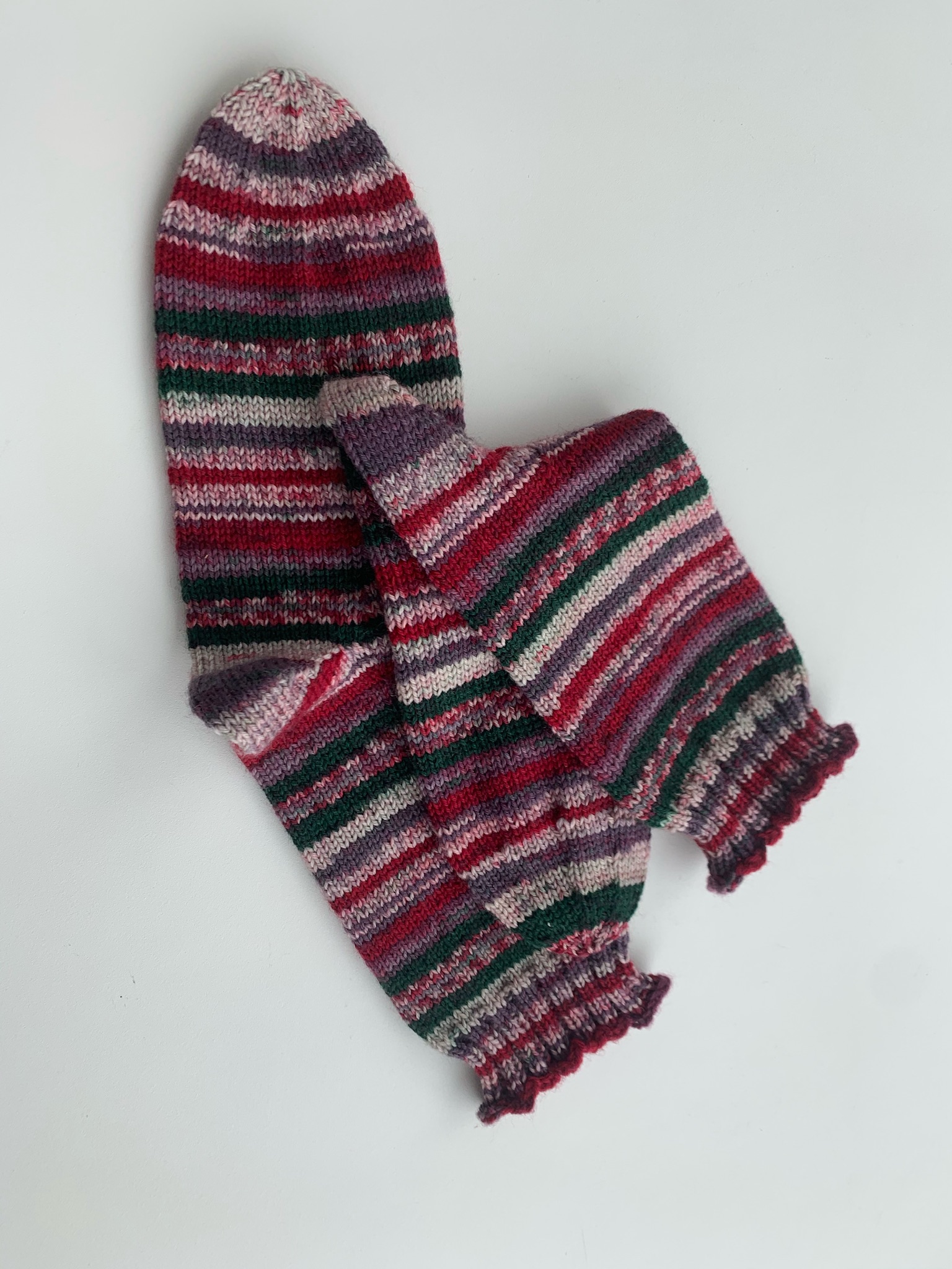 Bei den Weihnachtssocken leide ich am Singlesockensyndrom – ich wollte wissen, wie die Wolle wird und dann war die Spannung weg und der zweite Socken hat etwas gedauert 😇