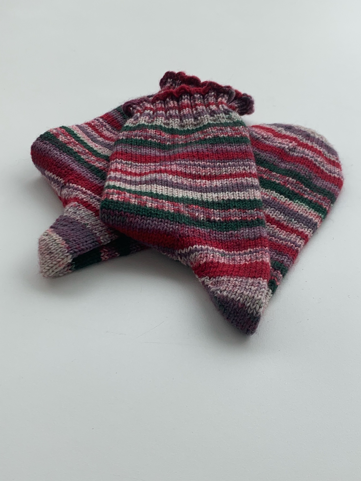 Dieser aber nochmal gekürzt und auf den Wollrest abgestimmt – weniger Maschen bzw. auch weniger Zwischenreihen